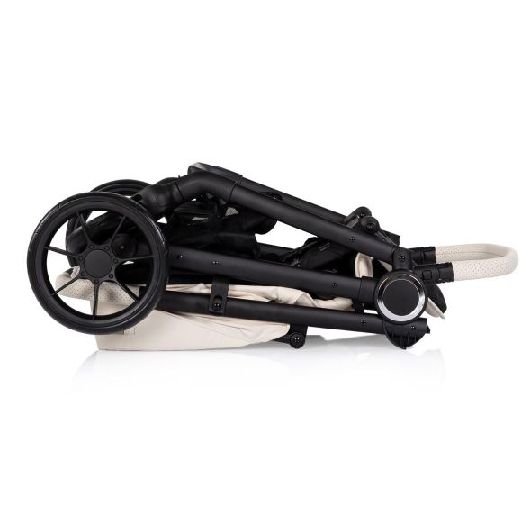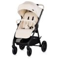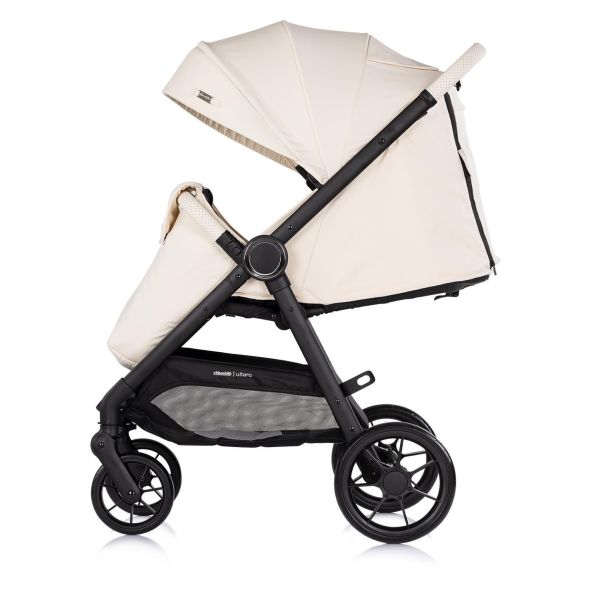 Детската количка Chipolino - Ултера е подходяща за новородени и деца до 22 kg, като съчетава класическа рама с комфорт и сигурност за ежедневна употреба. Разполага с регулируема облегалка и поставка за крачета, свалящ се предпазен борд с еко кожа, 5-точков обезопасителен колан с меки подложки и голям сенник с прозорец за наблюдение, козирка и джоб за аксесоари. Дръжката е от ръчношита еко кожа, има просторен кош за багаж и се сгъва лесно с една ръка, като в комплекта е включено покривало за крачетата. Колелата са устойчиви на износване, с амортисьори, свалят се с едно движение, а задните са със свързана спирачка.