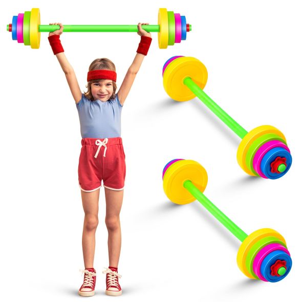 Комплектът включва и 8 диска, които могат да се пълнят с вода или пясък за по-голяма тежест.