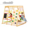 Открий дървен пиклер комплект за катерене 7 в 1 – стена, мрежа, люлка, халки, пързалка, гимнастическа стълба и дъска за рисуване. Montessori катерушка от естествено дърво за активна игра у дома!