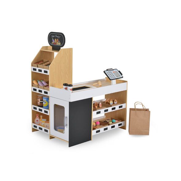 Вдъхновете въображението и ролевите игри на вашето дете с този детски дървен магазин с реалистичен дизайн от Moni Toys! Комплектът предлага всичко необходимо за забавна и образователна игра „на магазин“, която развива социалните умения, креативността и чувството за отговорност.