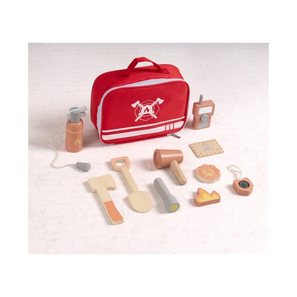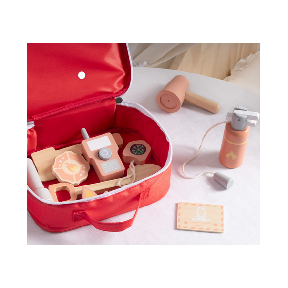 Вдъхновете смели спасителни мисии с дървения комплект „Малкият пожарникар“.В практичното куфарче ще откриете пожарогасител, мегафон, брадва и лопатка – всичко необходимо за вълнуващи ролеви игри. С този комплект децата не само ще се забавляват, но и ще развиват въображение, социални умения и креативност, докато влизат в ролята на истински герои.