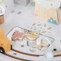 Комплектът включва:• Дървен влак с животни