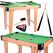 Детската билярдна маса е идеалният избор за малките почитатели на билярда, които искат да се забавляват и да развиват уменията си у дома! С размери 73.5 x 40.5 x 63 см, масата е достатъчно компактна за всяка стая, но и достатъчно голяма, за да създава усещане за истинска игра. Зеленият сукнен плот придава класическа визия, а стабилната конструкция гарантира комфорт и качество по време на всяка партия.