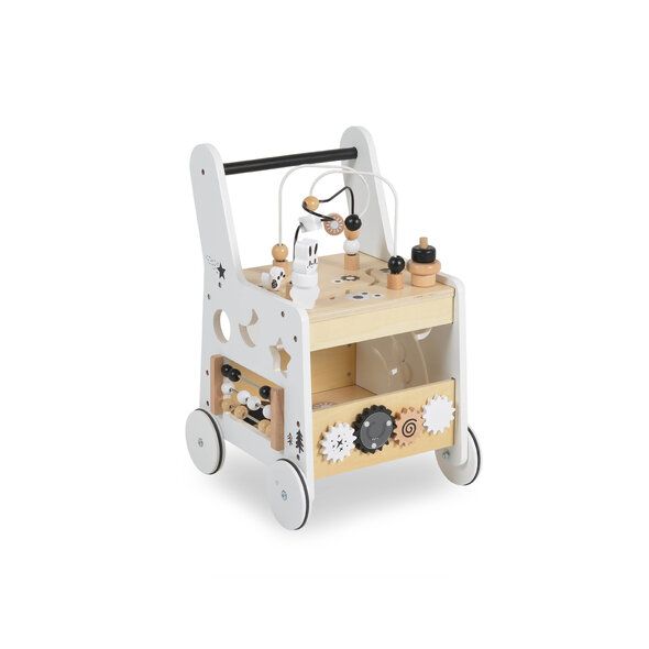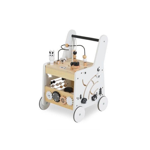 Подкрепете първите стъпки на вашето дете с тази дървена играчка за прохождане от Moni Toys, изработена от висококачествени материали. Освен стабилна опора при ходене, тя предлага разнообразни активности, които превръщат играта в забавление и учене едновременно.