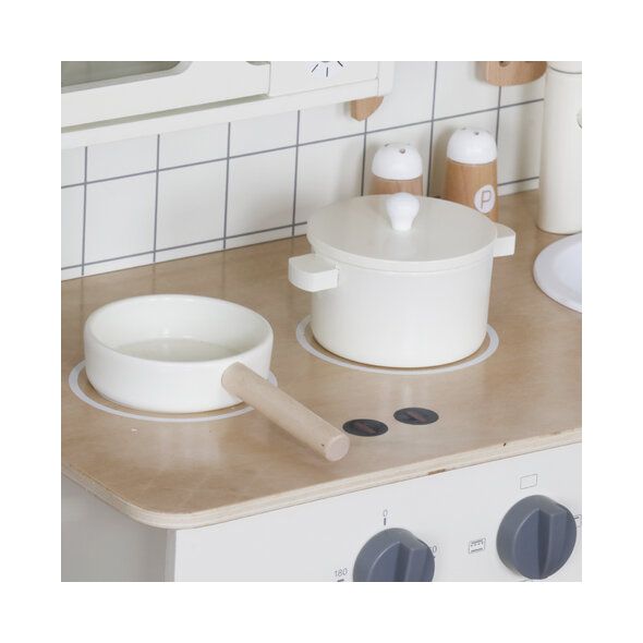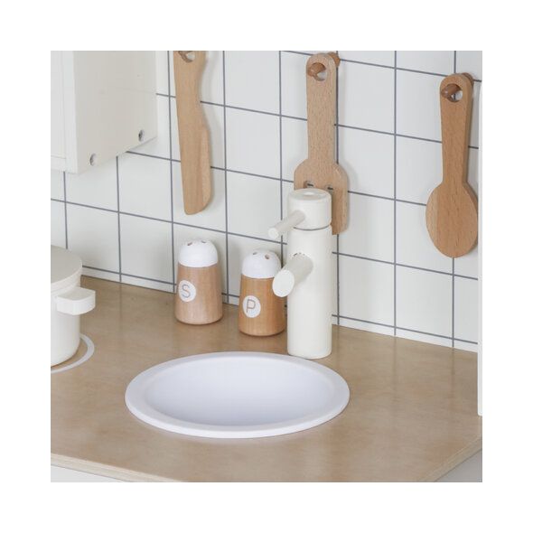 Дървената кухня Tinny от Moni Toys е перфектният избор за малките готвачи, които обичат да творят и да се забавляват в света на кулинарните игри! Изработена с внимание към детайла, тя предлага реалистичен дизайн и множество възможности за игра.
