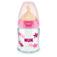 Стъклено шише с каучуков биберон 120мл Nuk Temperature Control 0-6м 10747115 розово