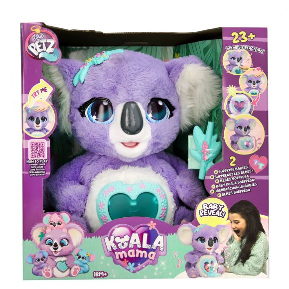 - Тази очарователна коала е на път да стане майка и има нужда от вашата обич и грижа! Мама Коала може да свети и издава 23 различни звука и реакции.Когато я прегръщате и храните, нейното коремче нараства, разкривайки светлини и звуци. След няколко минути внимание и прегръдки, тя ражда едно сладко бебе! Повторете процеса, за да видите как се появява още едно бебе. Колко е вълнуващо!