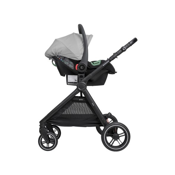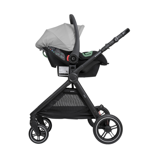 Включени аксесоари: Покривало за крачета на седалката и коша за новородено, адаптори и чанта.