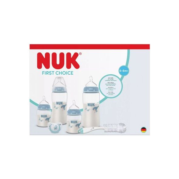 Сетът NUK First Choice + е чудесна придобивка за всеки родител и ще улесни храненето на детето. Шишетата са със скала за контрол на температурата. Бибероните са с ортодонтска форма, за да бъдат по-лесно приети от мъника и да не предизвикат раздразнения.