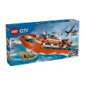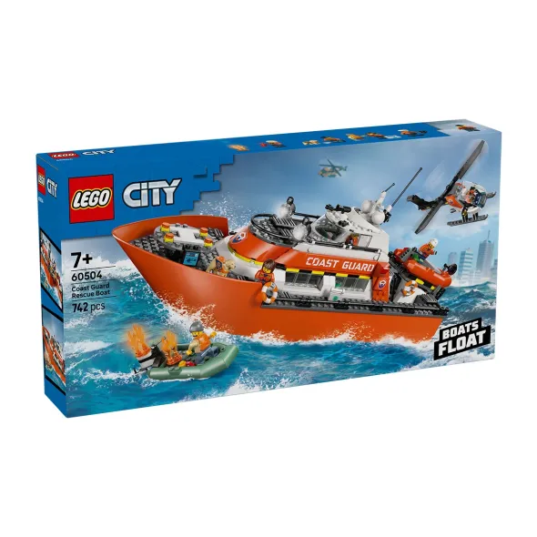 Децата на възраст над 7 години могат да се впуснат в океански приключения с предизвикателната играчка от LEGO® City Спасителен катер и хеликоптер на бреговата охрана (60504). Този богат на функции плаващ катер с подвижни слоеве на палубата позволява лесен достъп за игра до контролния мостик, спалните помещения и кухнята на кораба. Децата могат да използват спасителен катер от рампата за спускане или да се издигнат в небето със страхотен хеликоптер от хеликоптерната площадка на борда. Комплектът включва и втора лодка, LEGO пламъци, 5 минифигури и фигура на куче за въображаема игра и разказване на истории. И трите лодки плават по вода. Този комплект специализирани превозни средства-играчки за търсене и спасяване е чудесна изненада или подарък за рожден ден за момчета и момичета, които обичат практическата интерактивна игра. Добавете този комплект към другите комплекти от серията LEGO City (продават се отделно) за още по-големи приключения. С този комплект за игра наужким децата могат да се насладят на интуитивно конструиране с приложението LEGO Builder, да мащабират и завъртат с 3D инструкции, като същевременно запазват и проследяват напредъка си. Отправете се в открито море на борда на страхотния катер на бреговата охрана. Този плаващ спасителен център е пълен с функции! Присъединете се към екипажа на капитанския мостик, пригответе храна в кухнята или се отпуснете под палубата в уютните спални помещения. Когато е необходимо, изпратете бордовия хеликоптер от площадката за кацане и спуснете спасителния катер от рампата. Очакват ви епични океански приключения в LEGO® City!