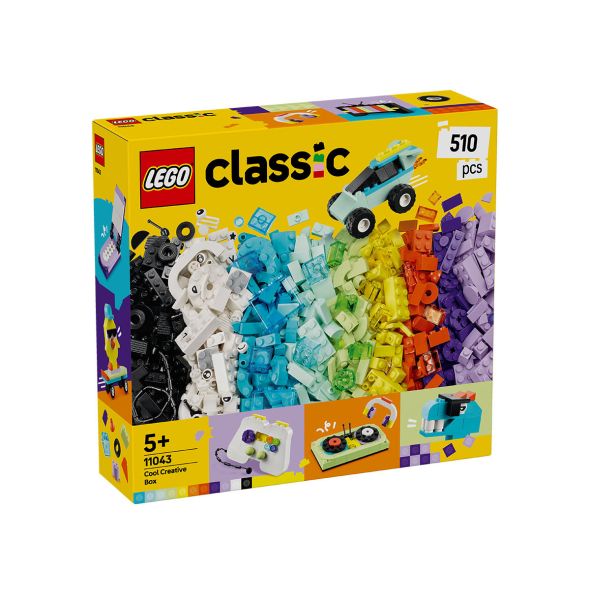 Създайте страхотни неща за игра и показване! Постройте контролер за игри, динозавър с очила, мобилен телефон с капак, DJ комплект със слушалки, скейтборд, чудовищен камион с въртящи се колела и много други. Комбинирайте моделите за още повече забавление – като например да поставите слушалките на динозавъра, а динозавъра на скейтборда! LEGO® Classic Страхотна творческа кутия (11043) е пълна с модели за построяване и игра, за да вдъхнови въображението на децата. С 510 цветни тухлички, плюс колела и други специални елементи, момчета и момичета на възраст над 5 години могат да създават и комбинират голямо разнообразие от модерни играчки, както и свои въображаеми творения. Много цветни тухлички, плюс очи, колела и панти, увеличават максимално възможностите за игра с този универсален комплект. Играчките за построяване включват контролер за игри, динозавър с очила, мобилен телефон с капак, скейтборд, чудовищен камион и DJ комплект със слушалки. Моделите могат да се комбинират и персонализират за още повече забавление – като например да поставите слушалките на динозавъра, а динозавъра на скейтборда.