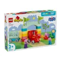 - ФУНКЦИИ ЗА ТВОРЧЕСКА ИГРА С ВЛАК - включва фигурки на Дядо Прасенце, прасенцето Джордж и Пепа, влакче-играчка, което може да се движи, и вагони, арка от тухлички и станция LEGO® DUPLO® с часовник;