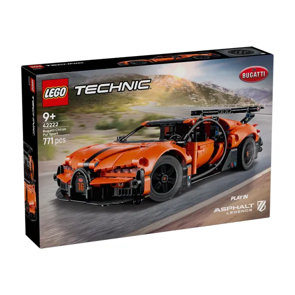 Закопчайте коланите, време е за състезание! Постройте мечтаната кола с комплекта LEGO® Technic Спортна хиперкола Bugatti Chiron Pur Sport. Възхищавайте се на двигателя W16, отварящите се врати и отварящия се капак. Разгледайте колоритната оранжева каросерия и черна окраска. След това изпробвайте кормилното управление, докато правите победната си обиколка! Развълнувайте феновете на състезанията с тази LEGO® Technic Спортна хиперкола Bugatti Chiron Pur Sport (42222) за момчета и момичета на възраст над 9 години. Колата има много удобни функции, които феновете на превозните средства могат да изследват. Управлявайте с копчето върху модела на хиперколата, след което разгледайте двигателя W16, отварящите се врати и отварящия се капак. Комплектът се предлага с код за осребряване, за да отключите цифрова версия на тази кола LEGO Technic в онлайн видеоиграта ASPHALT LEGENDS. Децата могат да се забавляват с конструирането и играта с модела на превозното средство. След това, когато дойде време за нова дейност, те могат да играят и да се състезават с цифровата версия в играта. Този комплект е идея за подарък за деца, които обичат състезателни коли. Комплектите LEGO Technic се отличават с реалистични движения и механизми, които въвеждат младите строители на LEGO във вселената на техниката по достъпен и реалистичен начин. Децата могат да строят уверено с приложението LEGO Builder – да мащабират, да завъртат в 3D и да проследяват напредъка си с лесни за следване цифрови инструкции. Комплектът съдържа 771 части.