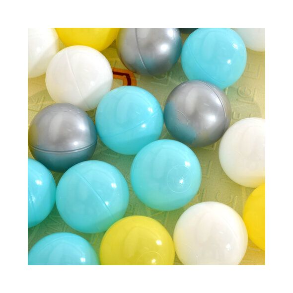 • 60 цветни топки – насърчават активната игра и подобряват координацията око–ръка