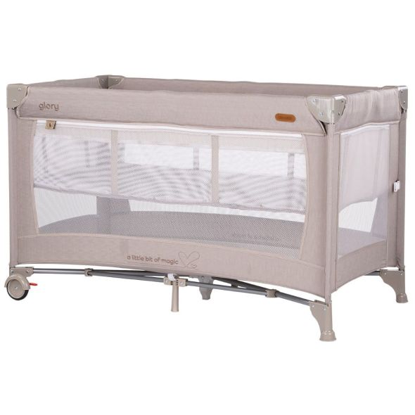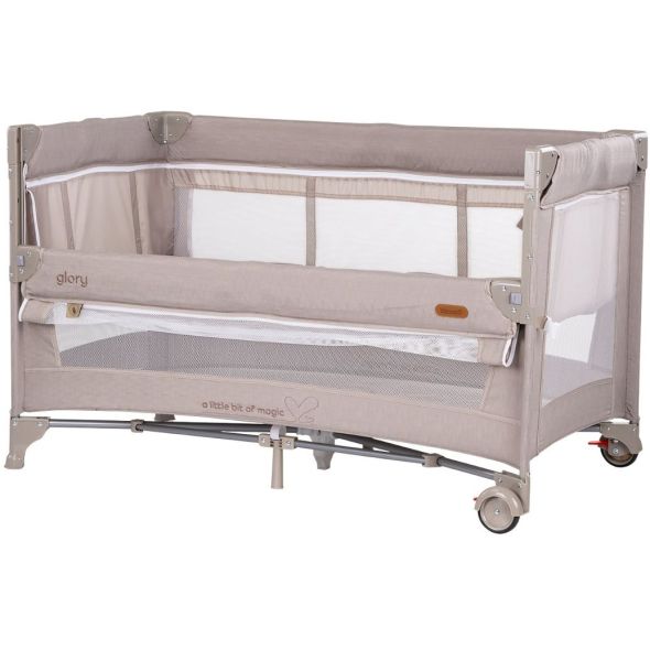 Кошарата Chipolino Glory е създадена за удобно странично спане до родителското легло, без да споделяте едно легло. Сгъва се с една ръка и е отлична за пътуване.