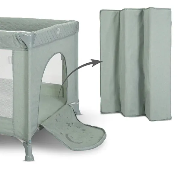 Кошарата за спане и игра от Lorelli има забавен дизайн и мрежести страни. Тя е на едно ниво и е лесна за сгъване и разгъване. Моделът е подходящ за деца до 3 години. Разполага със страничен отвор с цип, който позволява на по-големите дечица сами да влизат и излизат.