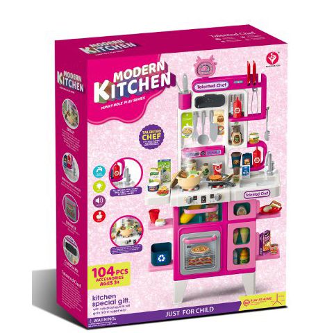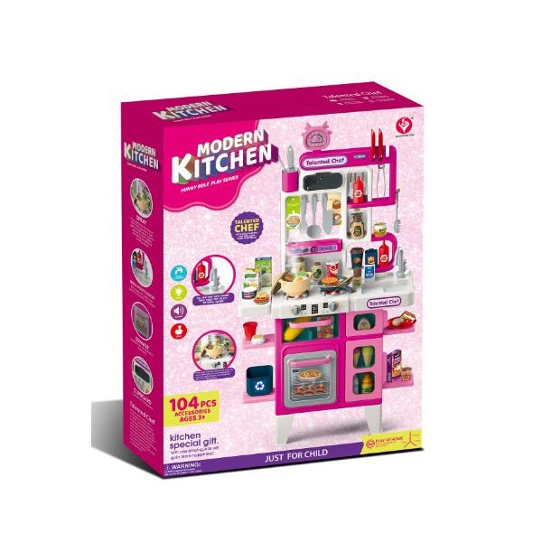 Кухнята е със светлини, звуци, течаща вода и пара.