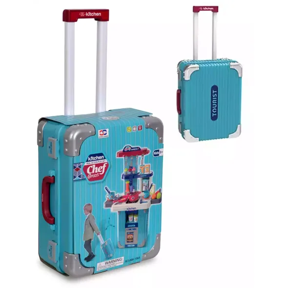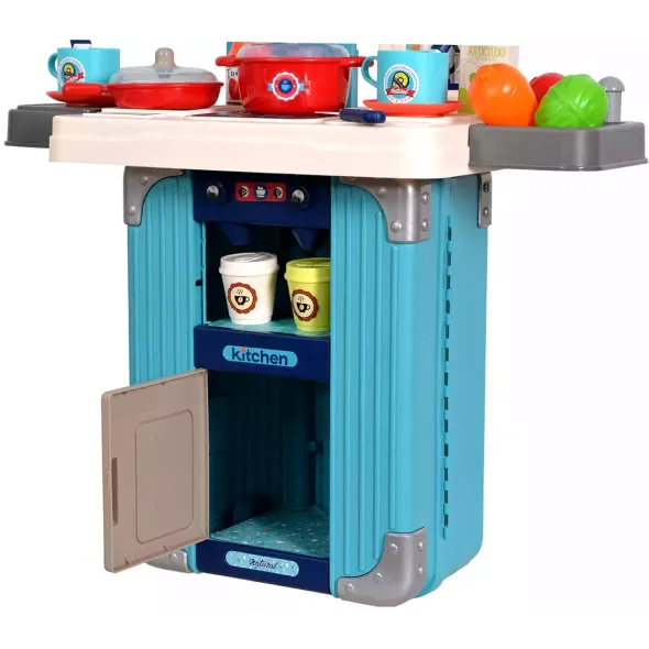 Подарете на детето си часове забавление с тази детска игрова кухня в удобен куфар-чемодан, която се превръща в истински кулинарен свят! Изработена от висококачествен и безопасен пластмаса, кухнята впечатлява с ярък синьо-бял дизайн и прецизно изработени детайли.