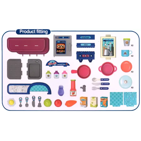 Детска кухня в куфарче с 42 части, светлинни и звукови ефекти. Подходяща за момичета и момчета над 3 години. Лесно сглобяване без инструменти. Комплектът включва прибори, съдове, имитации на храни и фурна. Идеална за ролеви игри и развитие на детското въображение и моторика. Висококачествени материали, ярък дизайн и компактно съхранение.