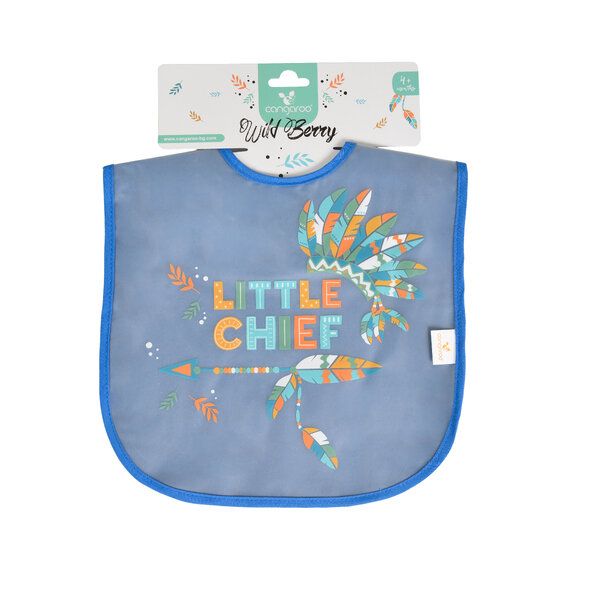 Детският лигавник Cangaroo - Wild berry е подходящ за дечица над 4 месеца. Той пази дрешките на мъника да останат сухи и чисти по време на хранене. Изработен е от 100% памучен плат, а горният слой е от водоустойчив материал, който не позволява на петната да се задържат.