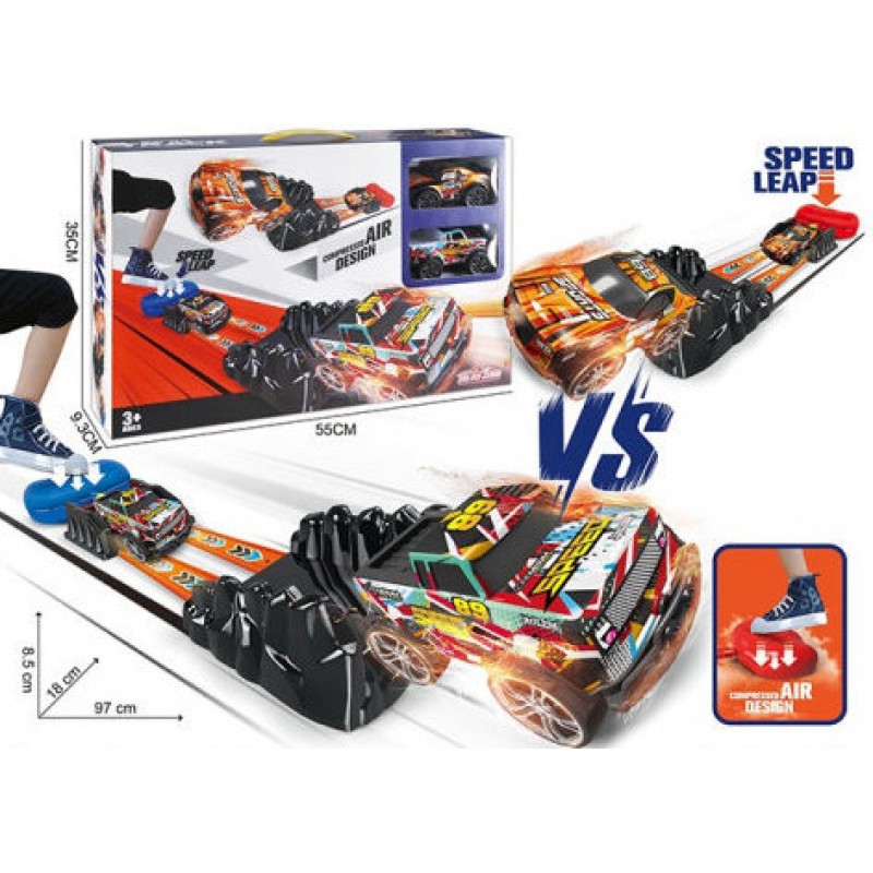 Комплектът включва 2бр колички и писта.