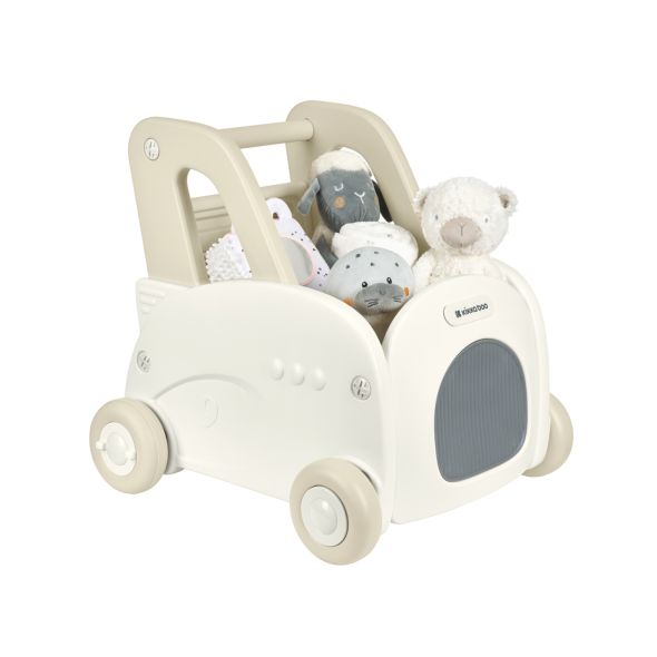Може да се използва като проходилка за бутане, играчка за возене, играчка за дърпане и количка за пазаруване с ракла за съхранение на играчки;