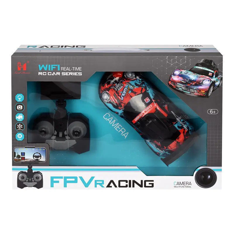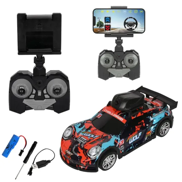Тази състезателна кола с камера, светлинни ефекти и РК предлага заснемане на видео и снимки в реално време чрез камера, управлявана чрез приложение на вашия телефон - сканирайте QR кода от кутията и свалете приложението.