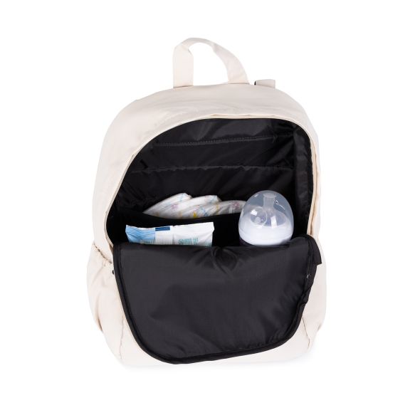 Просторното основно отделение побира памперси, мокри кърпички, шишета, резервни дрехи, храна, играчки и други аксесоари, необходими за ежедневни разходки, пътувания и по-дълги излизания. Предният джоб и допълнителните вътрешни отделения улесняват организацията и бързия достъп до най-често използваните вещи.