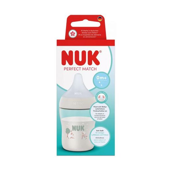Шишенцето NUK Perfect Match е с нежен дизайн, леко и удобно. Разполага със силиконов биберон и интегрирана скала, която показва температурата на храната. Бутилката за пиене е непропусклива, изработена от здрав, устойчив на счупване полипропилен.