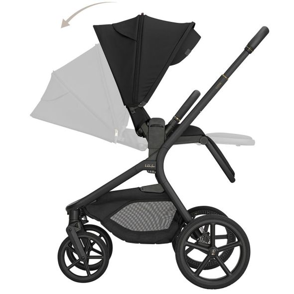 • Иновативна компактна система за сгъване на коша за новородено заедно с рамката. Тази уникална функция прави количката изключително компактна и удобна;