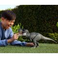 Тиранозавър Рекс, вдъхновен от Jurassic World Rebirth, идва с яростна функция за многократно захапване! При натискане на езика се чува първичен победоносен рев. Ако езикът се задържи по-дълго, се активира свирепа поредица от непрекъснати захапвания със светлинни и звукови ефекти! Тази функция осигурява вълнуващи битки, докато T-Rex напада други фигури-динозаври (предлагат се отделно)! Чрез движение на опашката главата може да се движи нагоре-надолу или настрани, докато огромната челюст остава широко отворена! Сканирайте Tracking Code на крака на динозавъра в безплатното приложение Jurassic World Play App със съвместимо смарт устройство (Android или iOS, не е включено), за да отключите дигитална версия на динозавъра и да играете увлекателна игра с надпревара по суша, въздух и вода. Идеален подарък за фенове на динозаври над 4 години. Цветовете и декорациите може да варират.