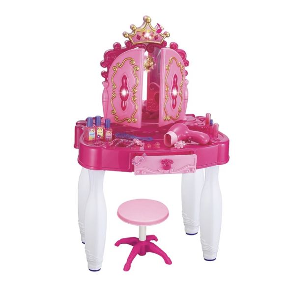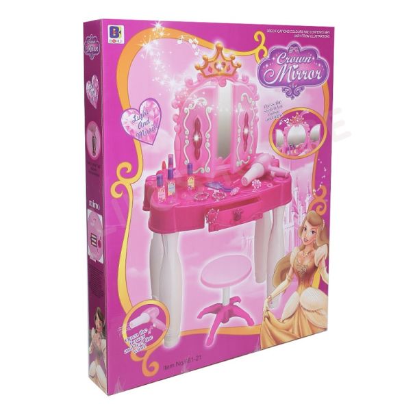 Включва аксесоари, стол, маса за красота с огледало с вратички, с чекмедже, в което могат да се поставят всички аксесоари. Идеален е за малки дами. Аксесоар, който не бива да пропускат!