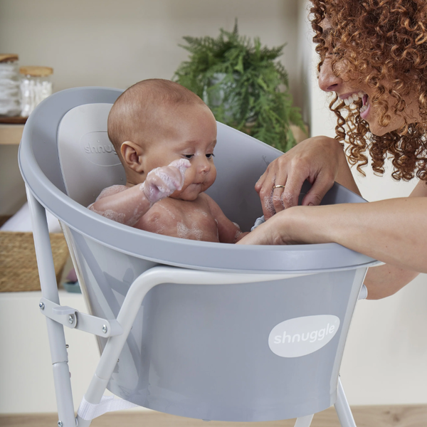 Shnuggle е внимателно проектиран, за да създаде сигурно и защитено място за къпане на Вашето бебе, което го прави по-удобно и приятно за бебчо и по-малко стресиращо за Вас - родителите.